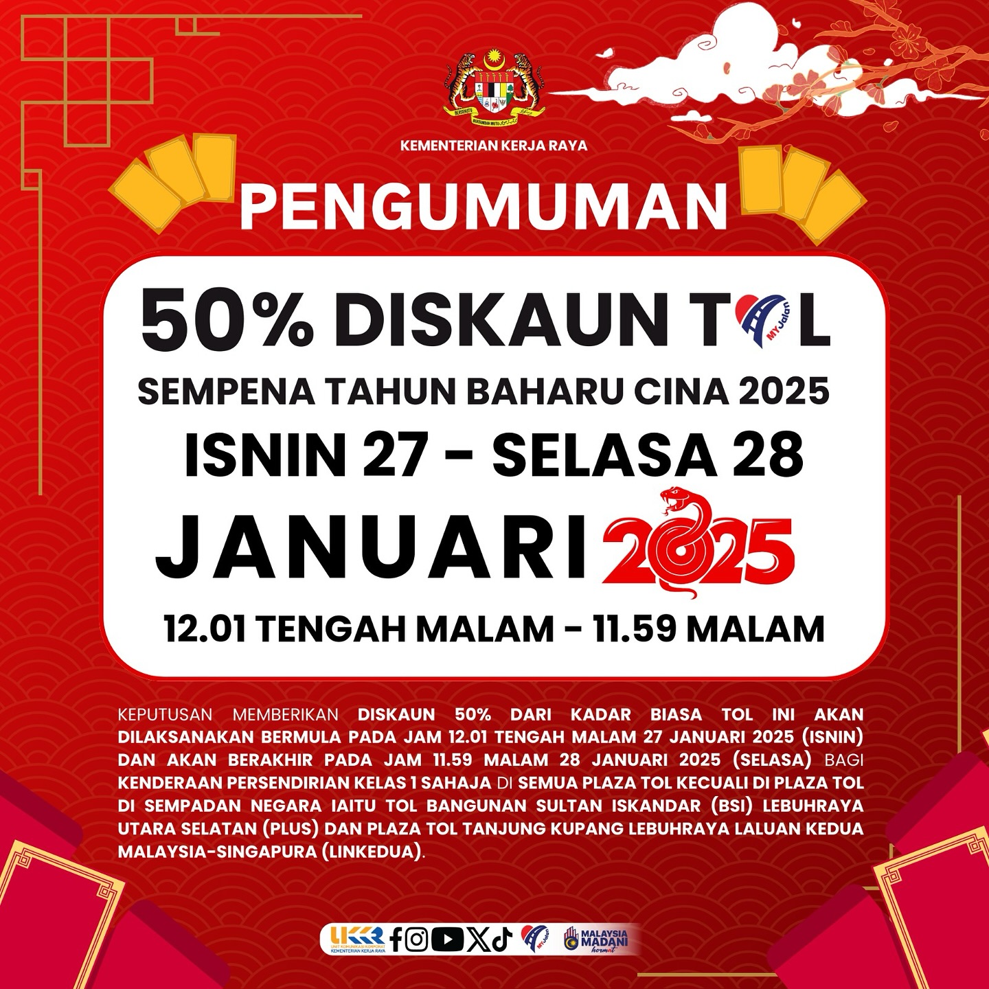 50% DISKAUN TOL SEMPENA TAHUN BAHARU CINA 2025