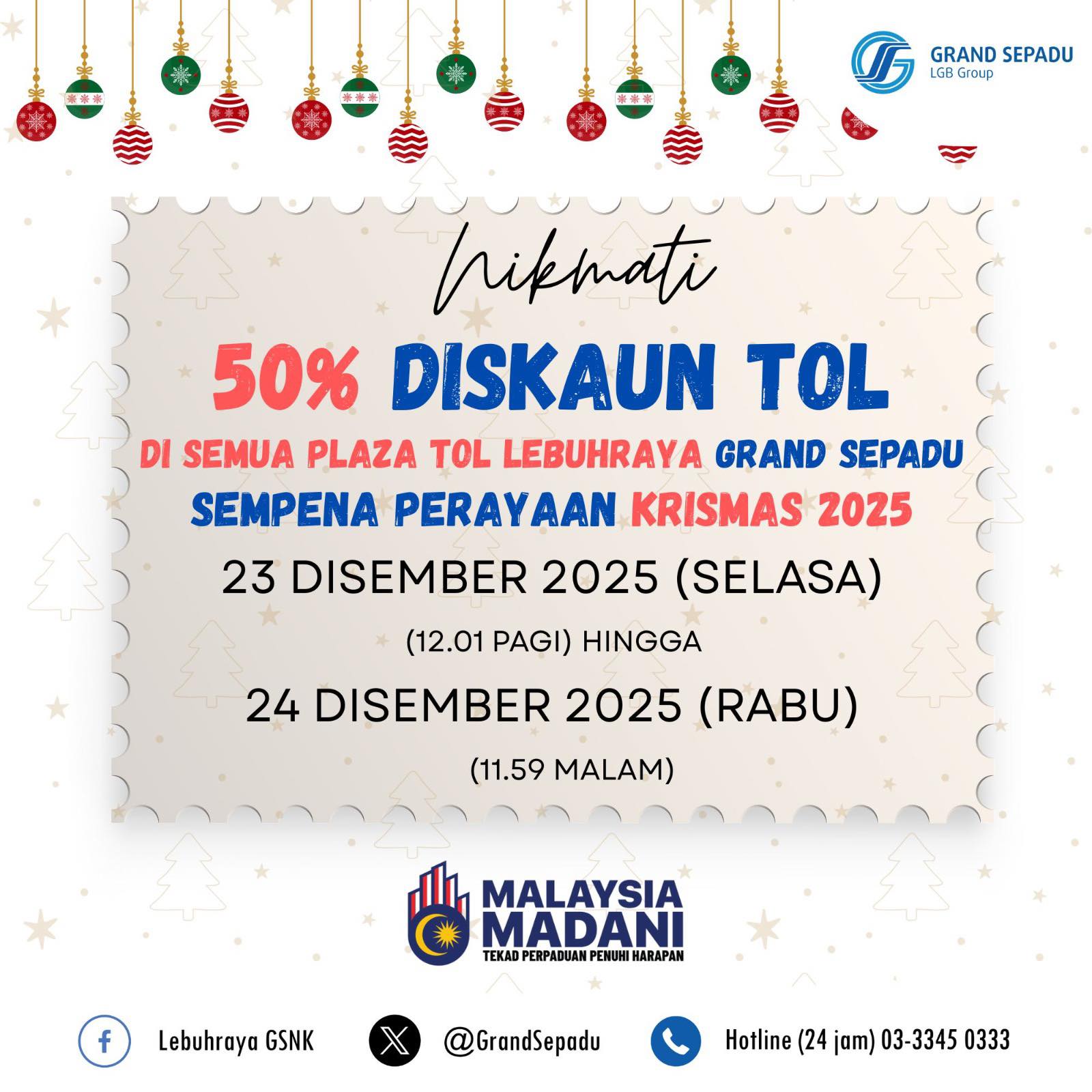 PEMBERIAN DISKAUN TOL PERCUMA 50% SEMPENA PERAYAAN KRISMAS 2025